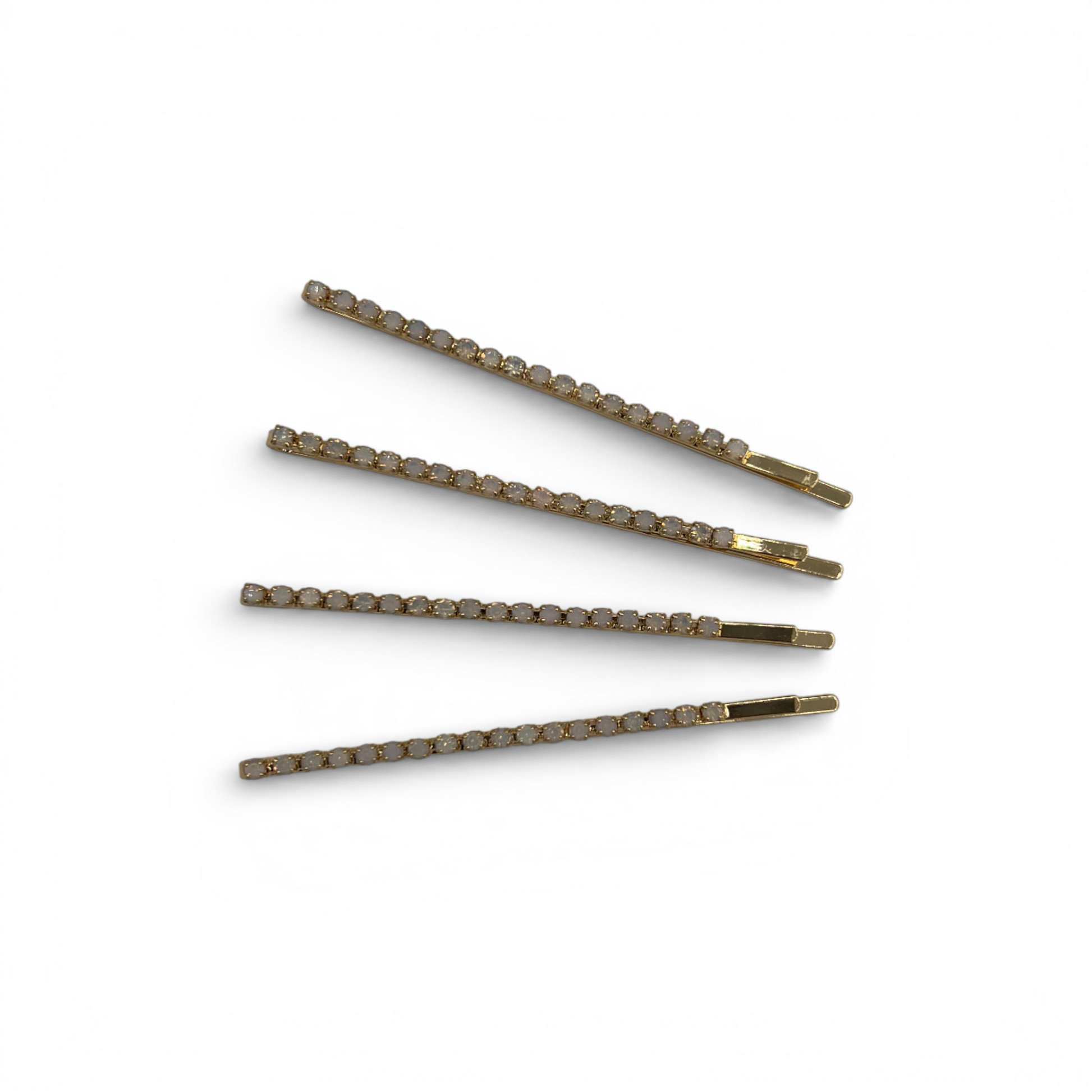 Sparkle Princess Crystal Bobby Pins, Set of Four - Opal / 18K Gold