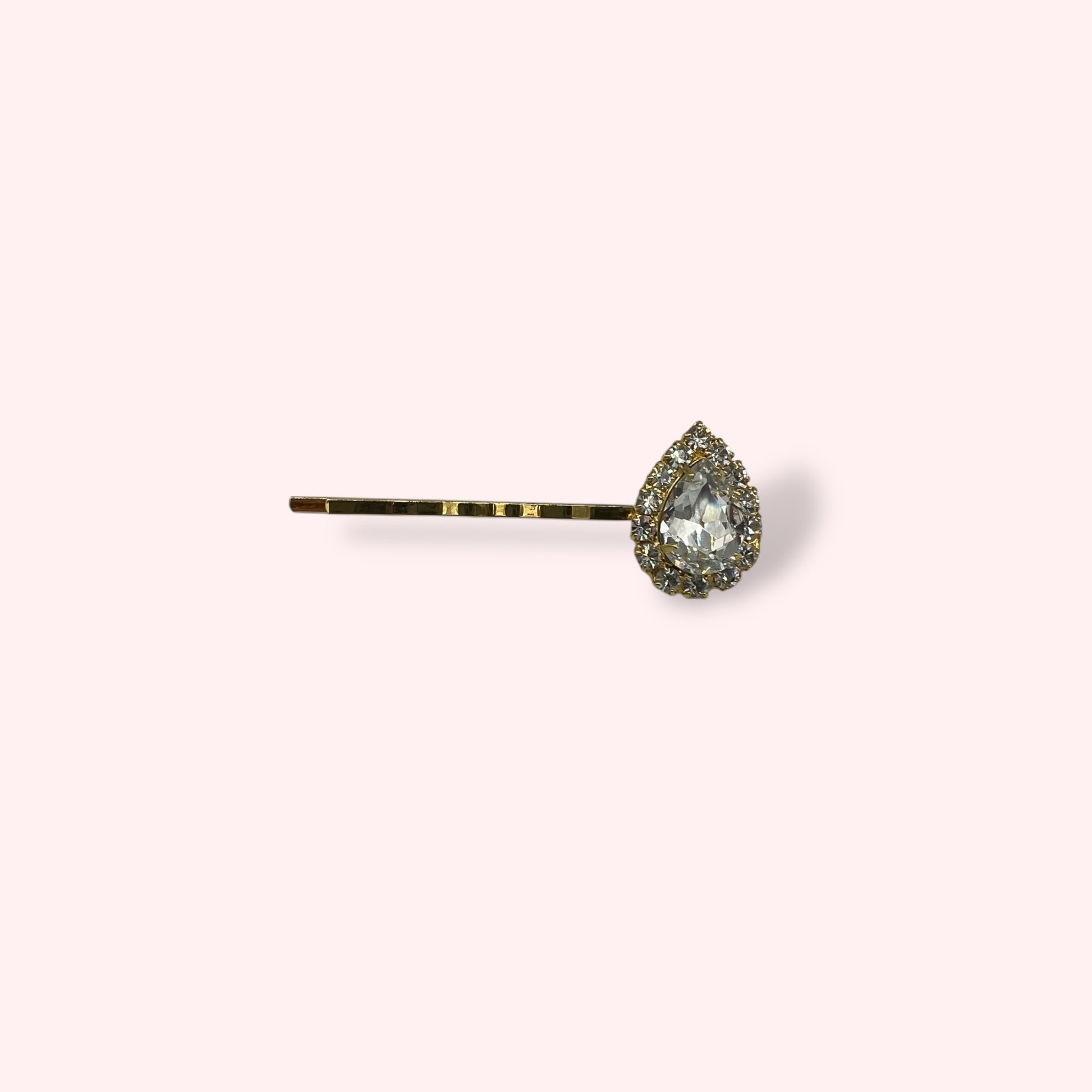 Classic Jewel Bobby Pin featuring Sparkling Swarovski Crystals - Clear/18K Gold