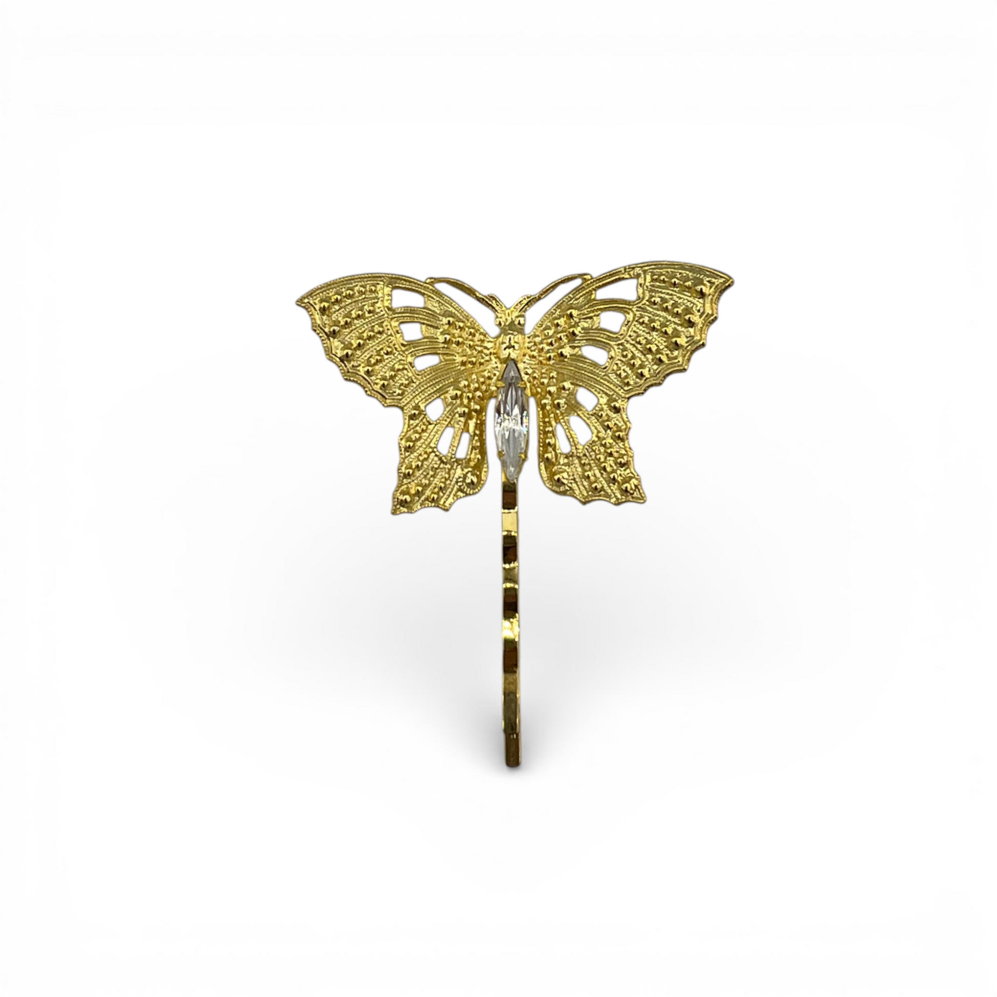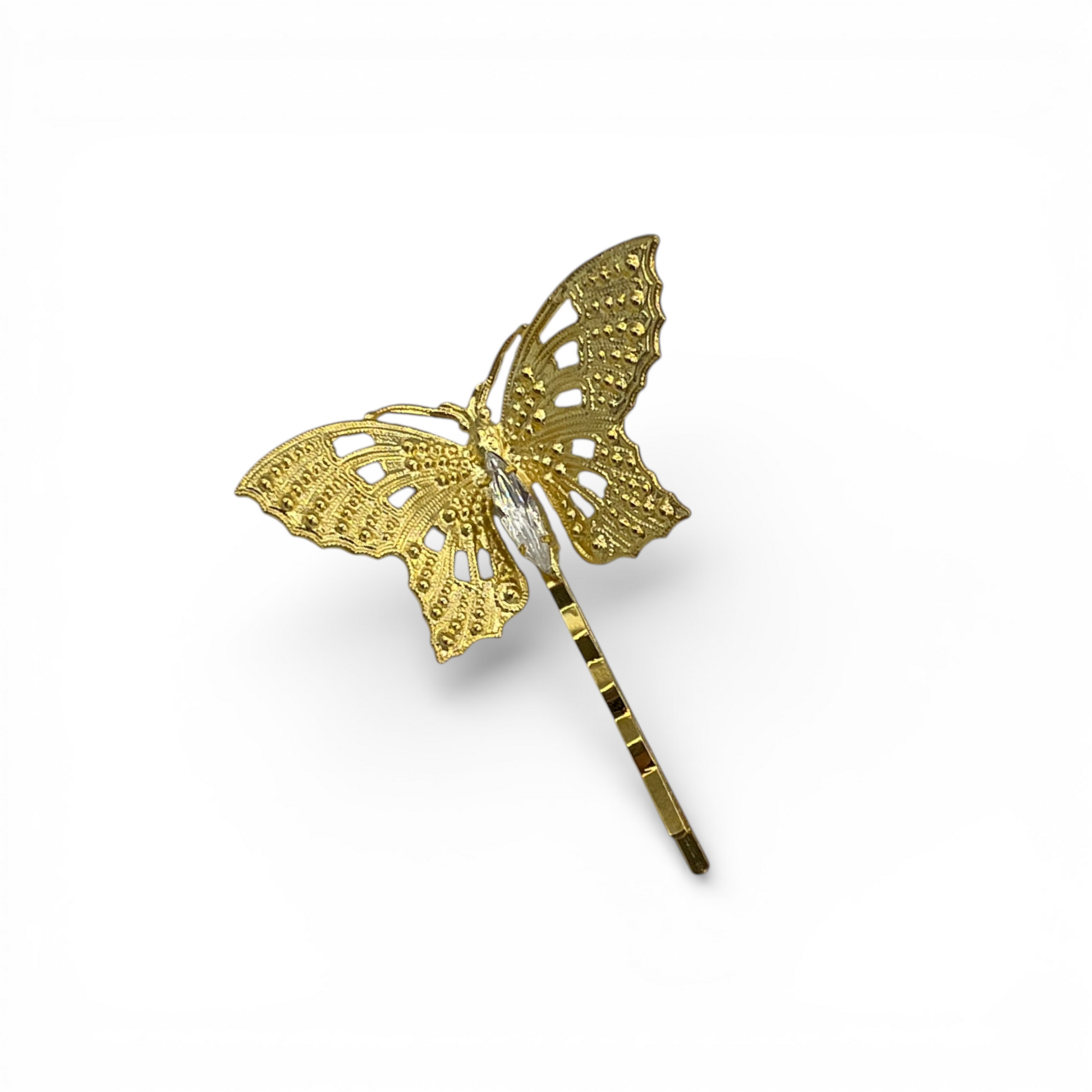 Fly Away with Me, Bobby Pin with Butterfly and Swarovski Crystal Accent - 18K Gold