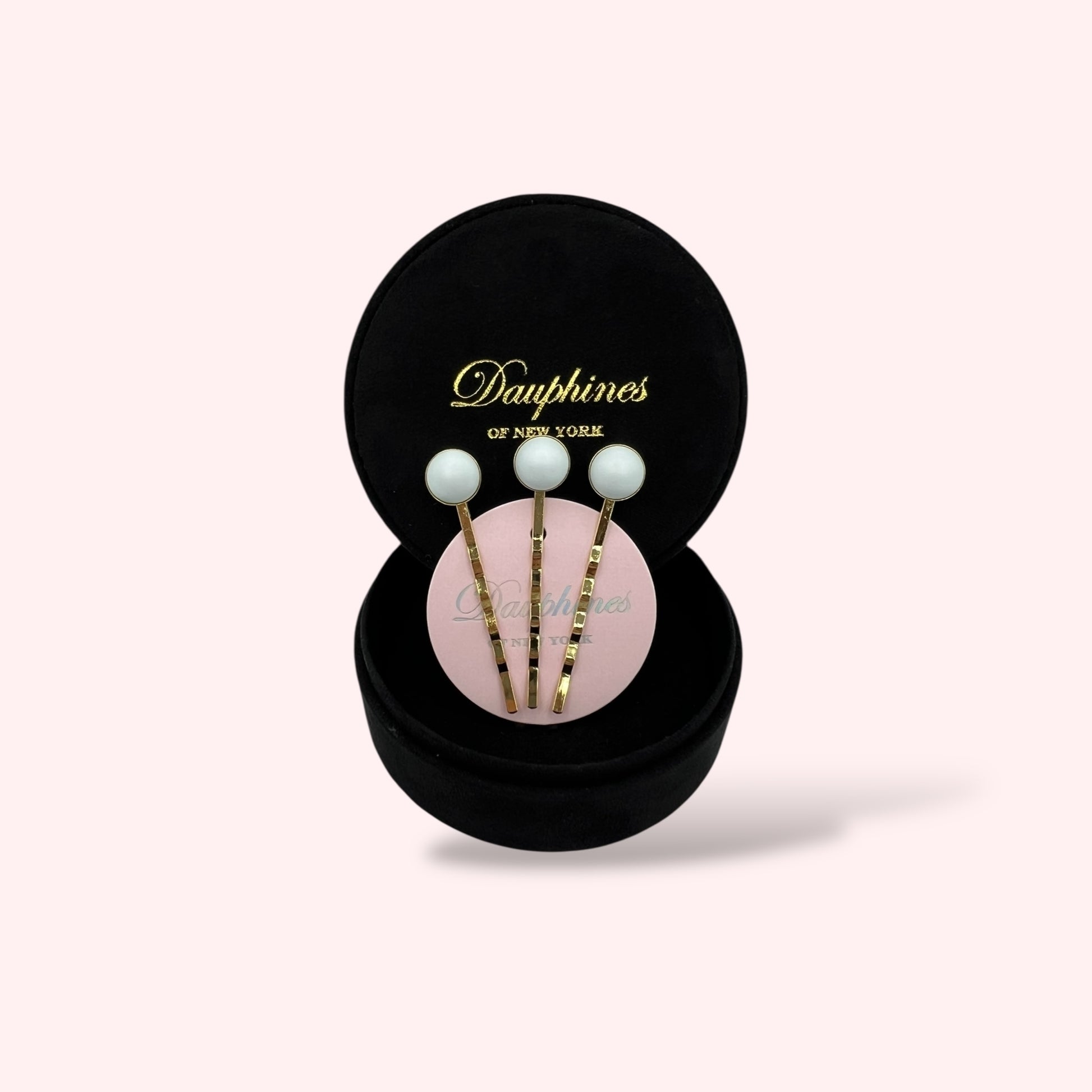 The Spotlight Bobby Pins, Set of Four - Pastel Blue Pearl / 18K Gold